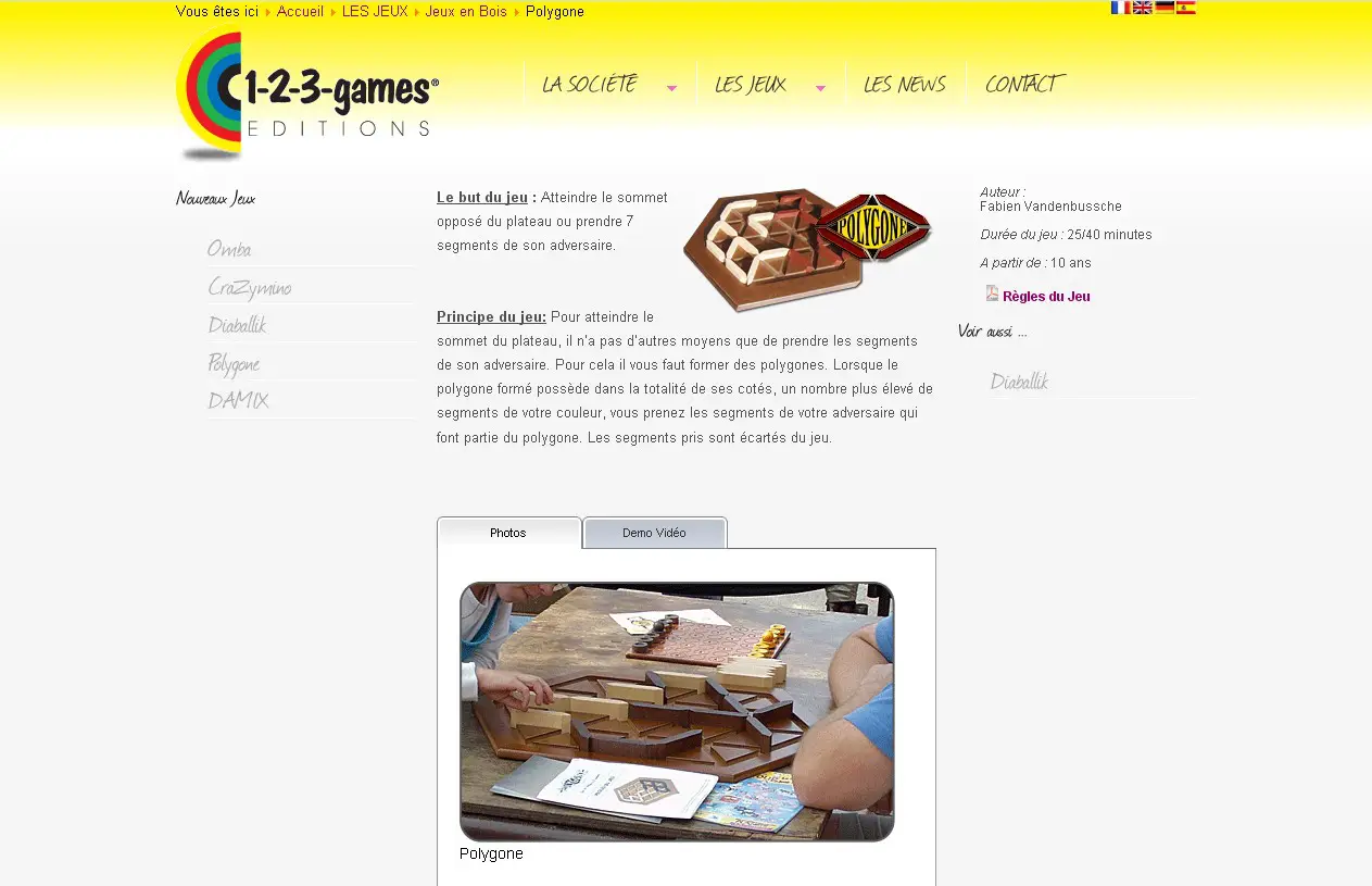 Context : Patrick Laterrot wanted to create the official "corporate" multilingual (4 languages) website for his board game publishing company 1-2-3-games Editions. The website was to showcase his games catalog (Cirkle, Cartes Ergomia, Billard bordelais Spiral, Damix, Diaballik,...).. The website was also aimed at communication professionals (therapists, training facilitators, teachers, event companies, etc.).