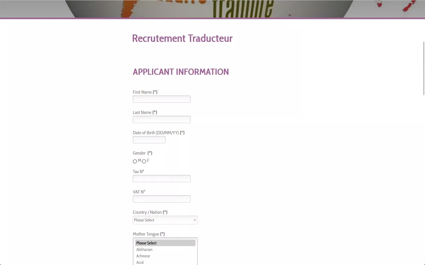 Contexte : Alina Ghimis souhaitait mettre en ligne un site web avec un double objectif. Le premier étant d'afficher ses services de traduction et interprétariat, le second étant de proposer une page "recrutement" afin d'enrichir sa base de collaborateurs.